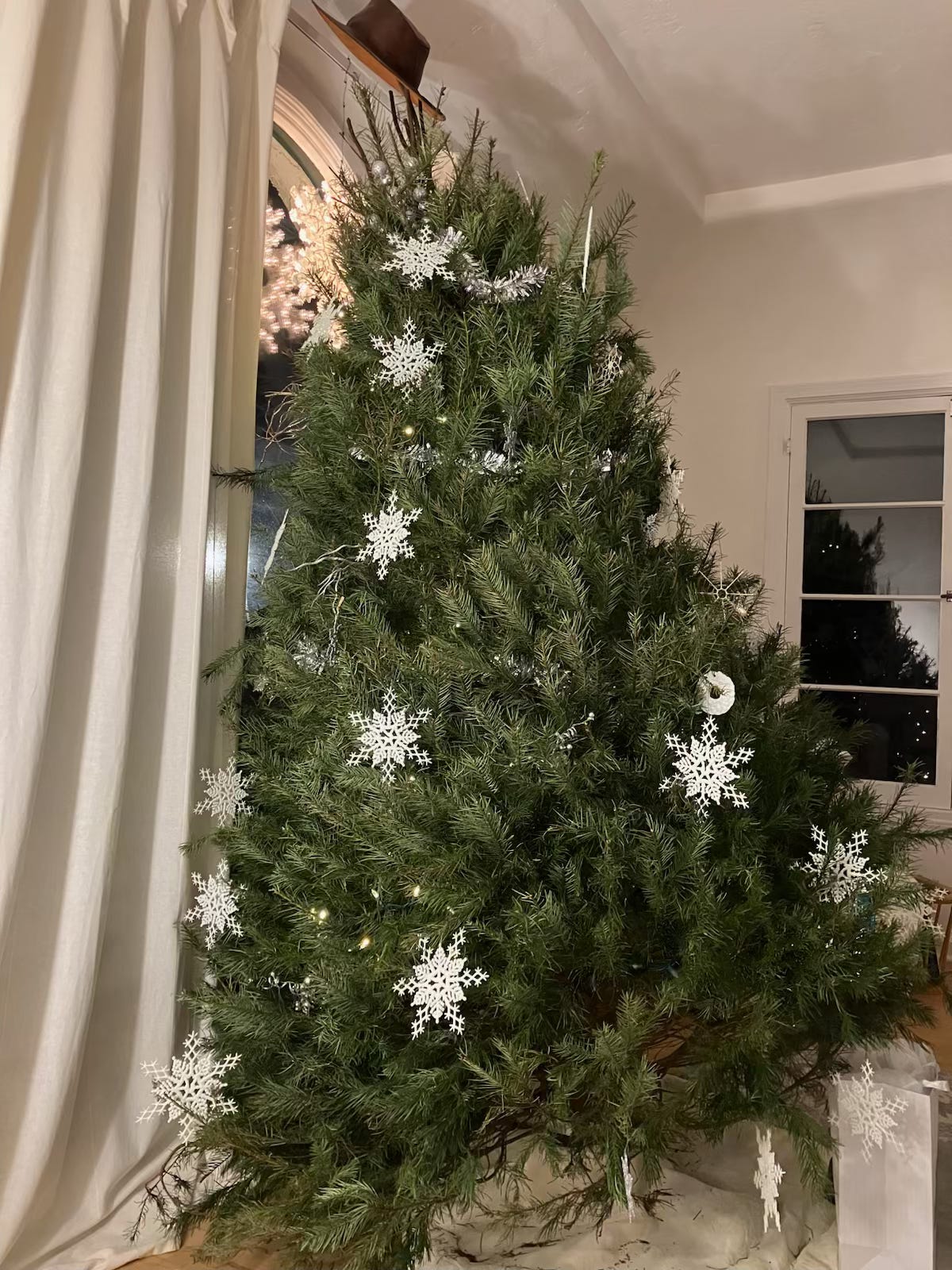 I nailed the Christmas tree crooked to its base. It’s tilted about ten degrees instead of standing straight. It is the first time that the home I live in has a real tree, so coming home to the smell of a Douglas fir – the crisp, forest-y sweet citrus that hangs in the air while you walk in the woods the day after rain – has been a new experience to me.