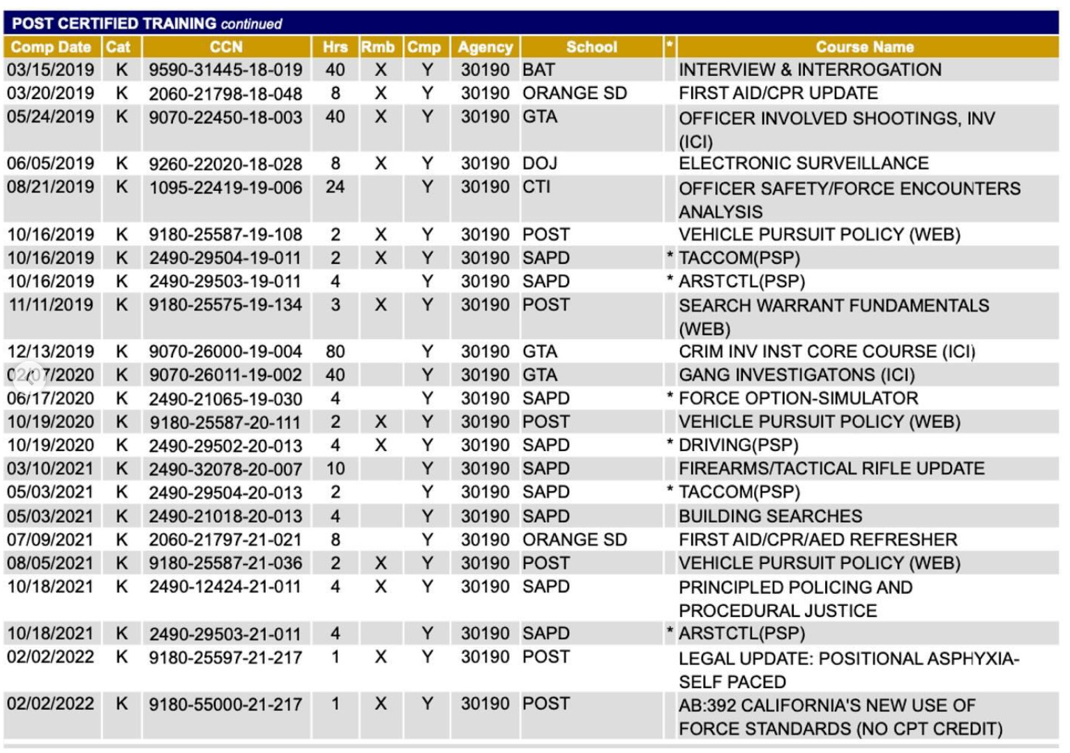 The ban, officially called “decertification”, was issued by the state’s commission on Peace Officer Standards and Training (POST). It went into effect on January 31st, 2024, according to records obtained from POST.